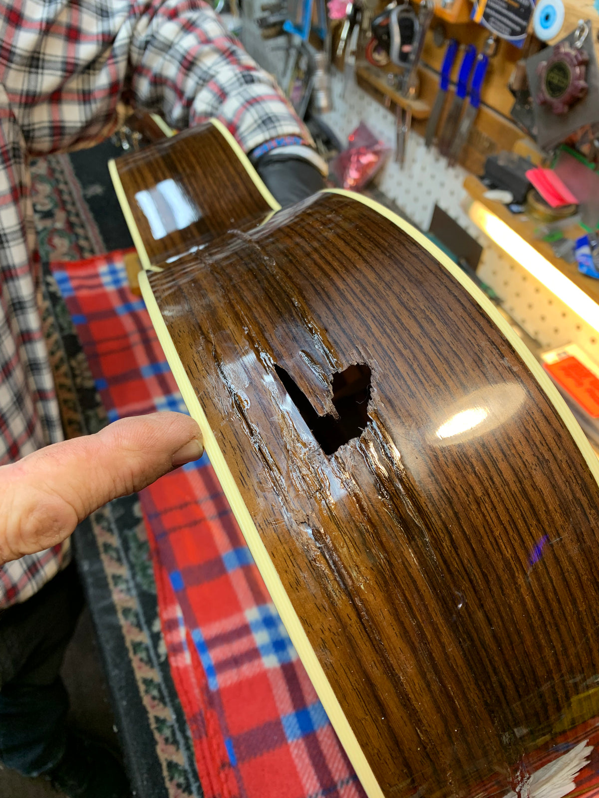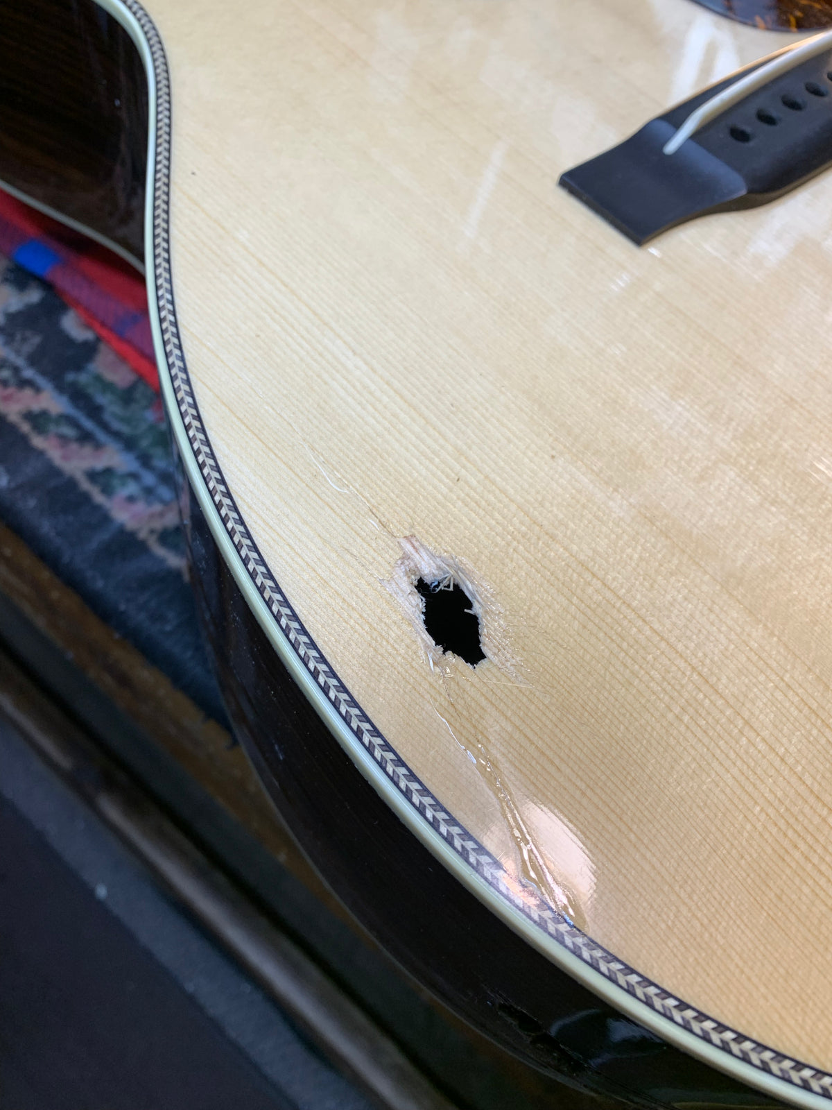 Sometimes you have to embrace the stories your instrument carries, like when a customer accidentally shot his Custom Shop Martin with a Glock .45